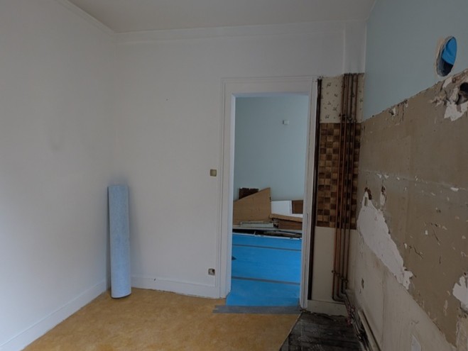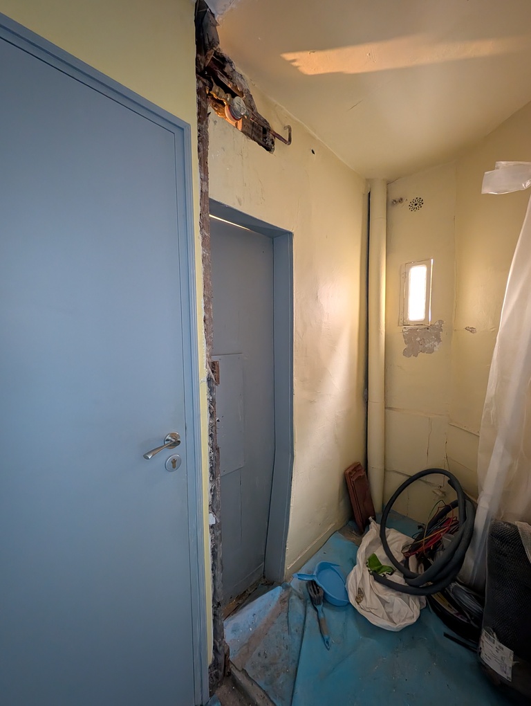 Cette première phase intègre également le placard technique des communs dans l’appartement, opération essentielle pour préparer les étapes futures.