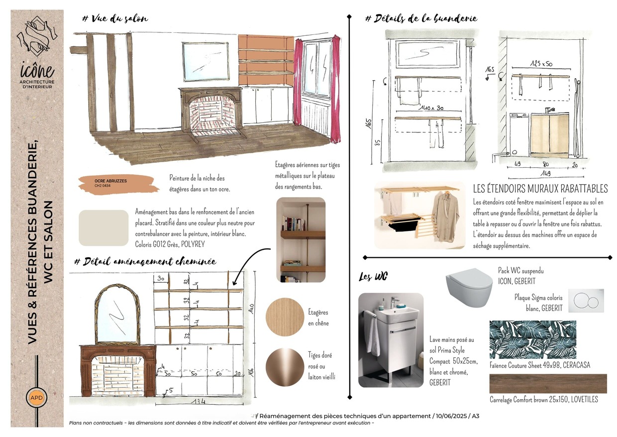 PLANCHE D’AMÉNAGEMENT – salon, buanderie & WC