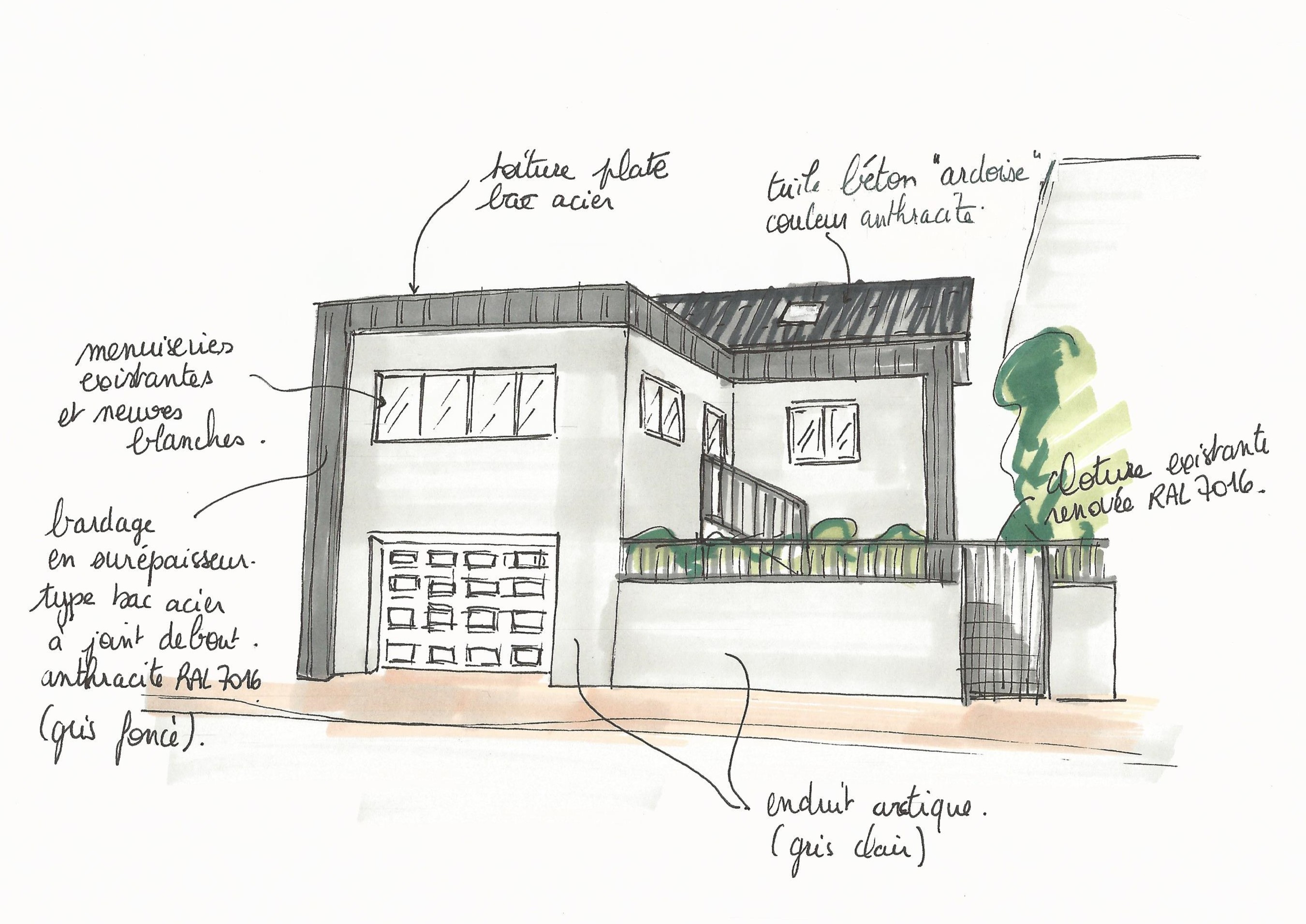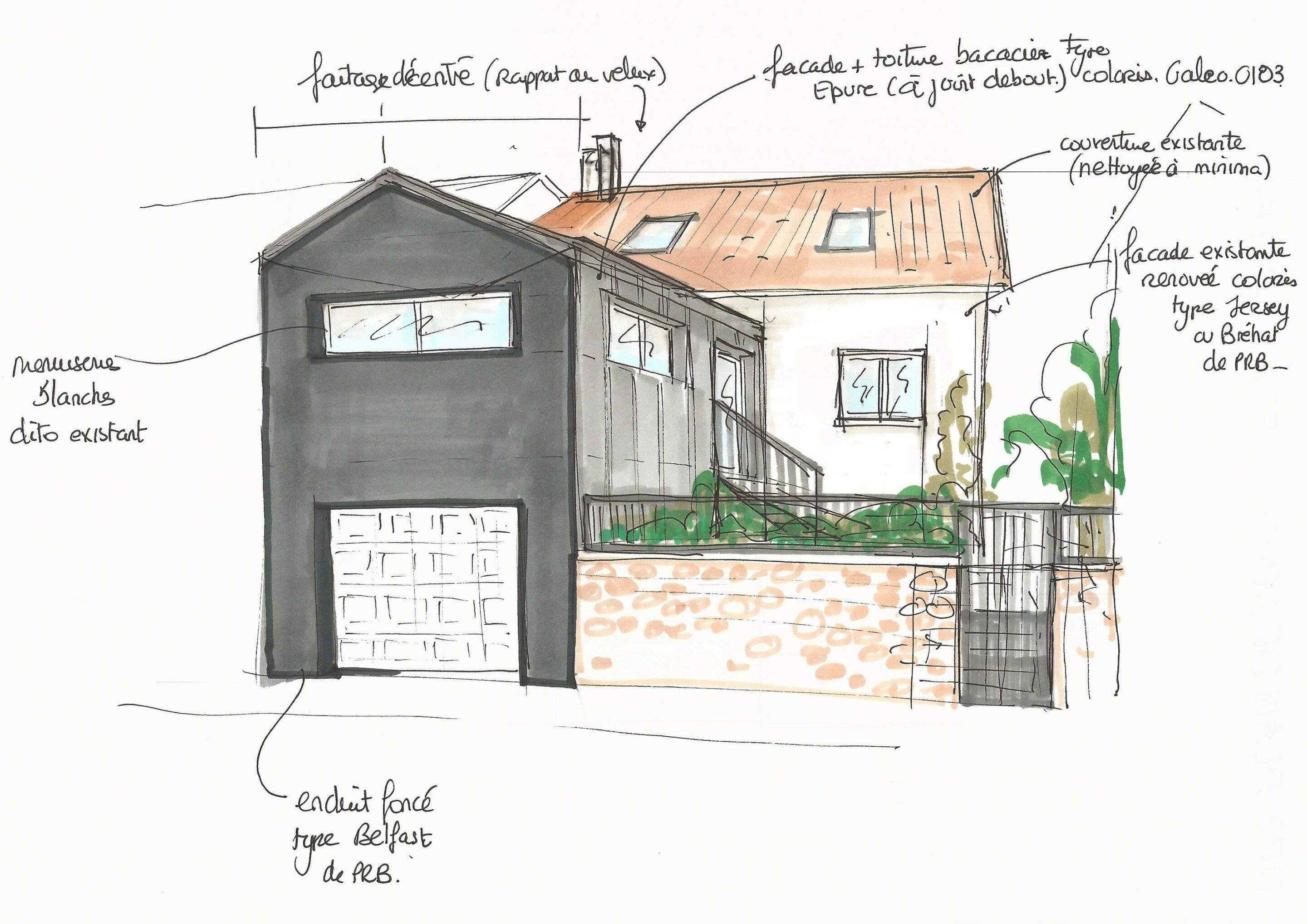 Des croquis de l’extérieur pour discuter avec le CAUE avant le dépôt administratif