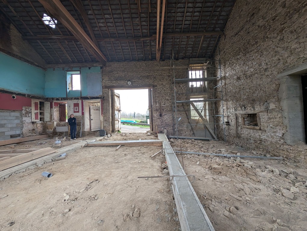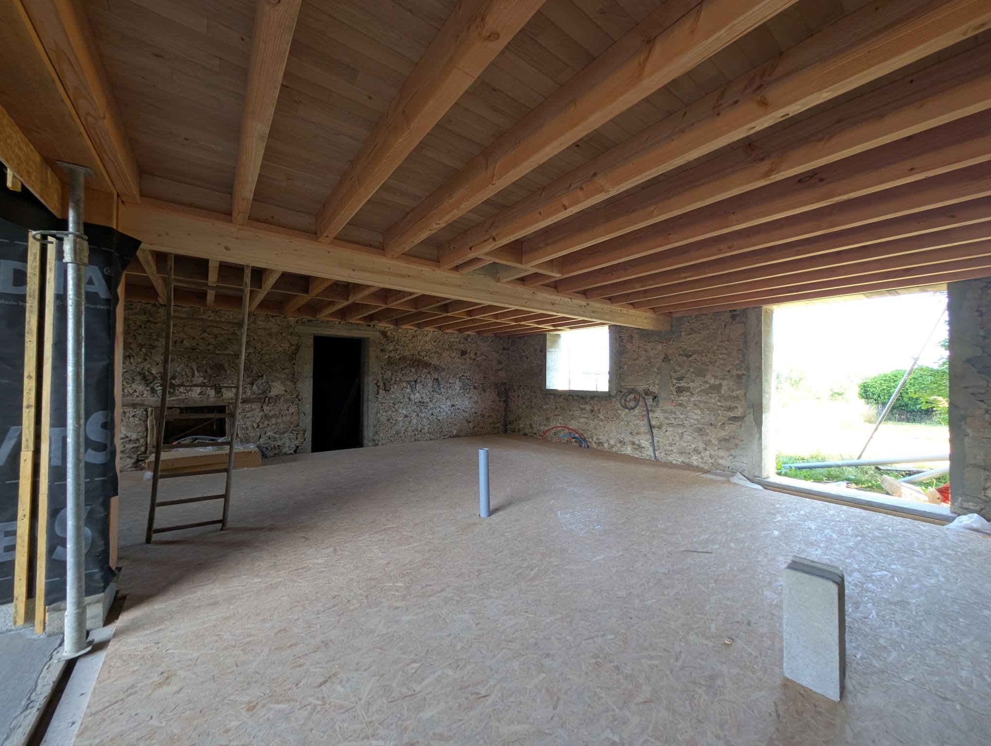 Quand les propriétaires découvrent cette ancienne grange en pierre, ils n’y voient pas un bâtiment vétuste, mais un potentiel : un lieu de vie à inventer pour leur famille de cinq, au calme, avec du terrain, du volume, et la promesse d’un nouveau chapitre.